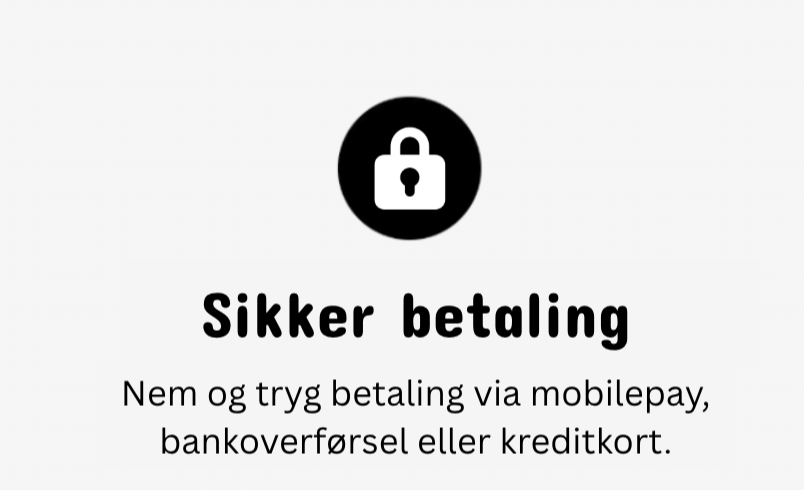 Du kan handle trygt hos os. Alle betalinger foregår via krypterede og godkendte løsninger, så dine oplysninger altid er beskyttet.